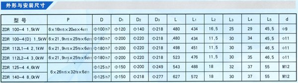 ZDR系列電動機為封閉式結構,防護等級為IP44,冷卻方式為自冷式IC0141,絕緣等級有B級和F級兩種。
